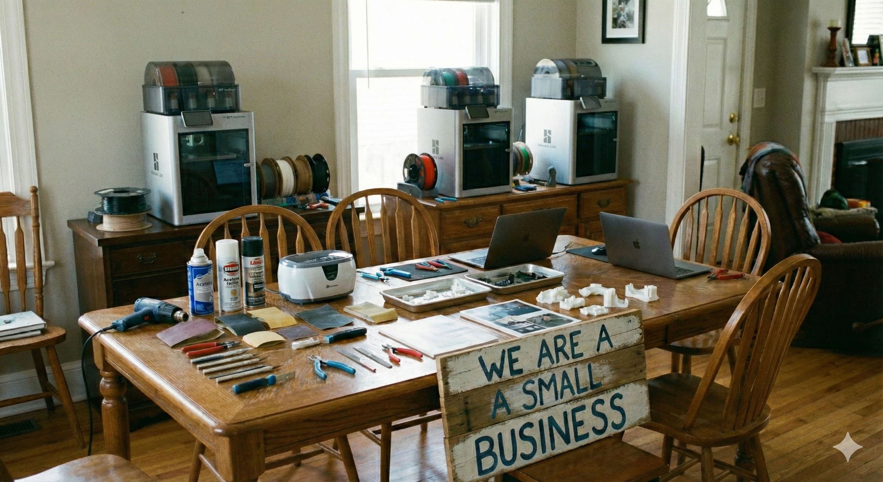 What started as a hobby from a thrift store find for Dad, quickly turned into a very fast and beautiful business. The more articulated toys and fidgets Dad made for the kids, the more friends wanted to buy. Eventually 1 printer turned into another, which turned into another. We now operate a small printer farm of high-quality printers.