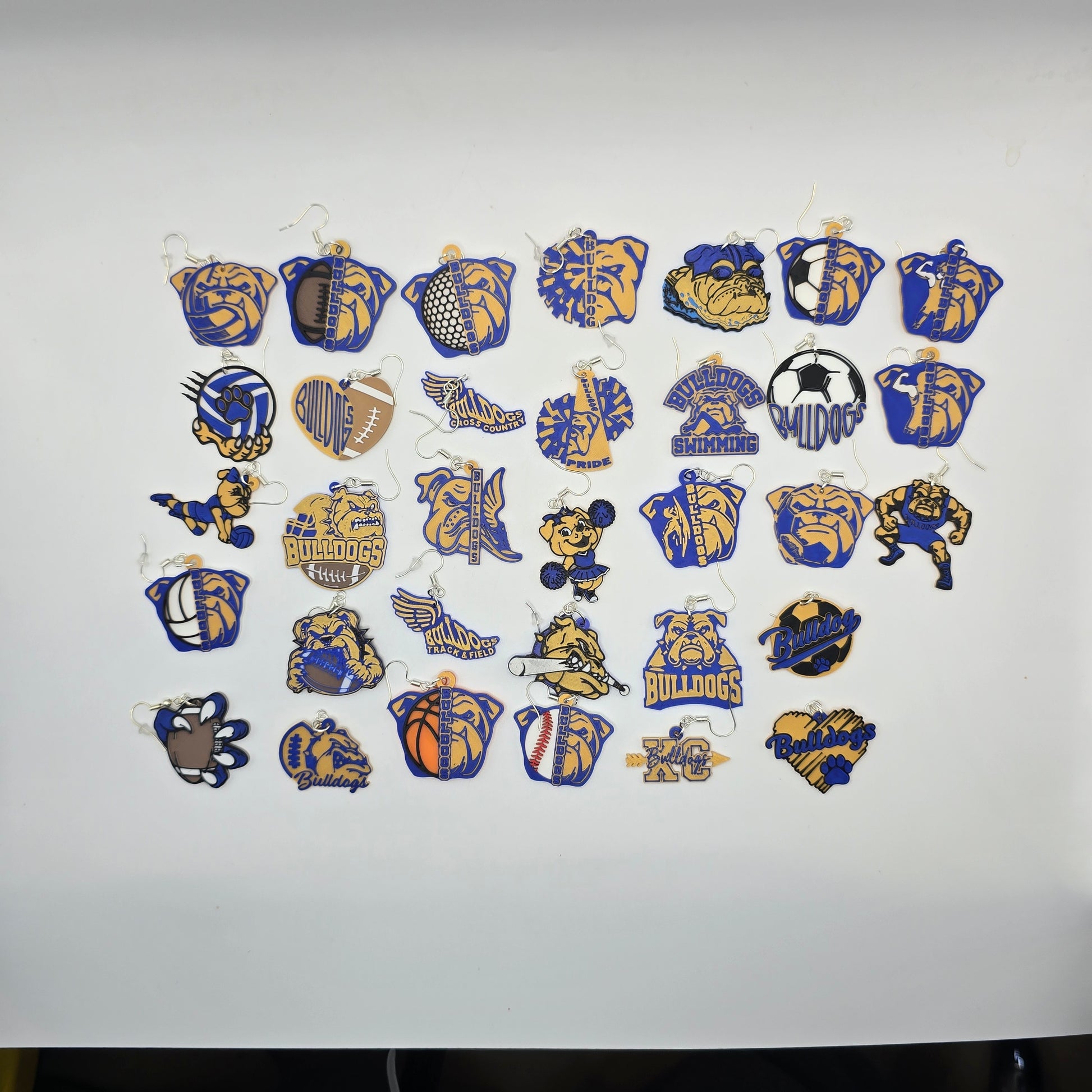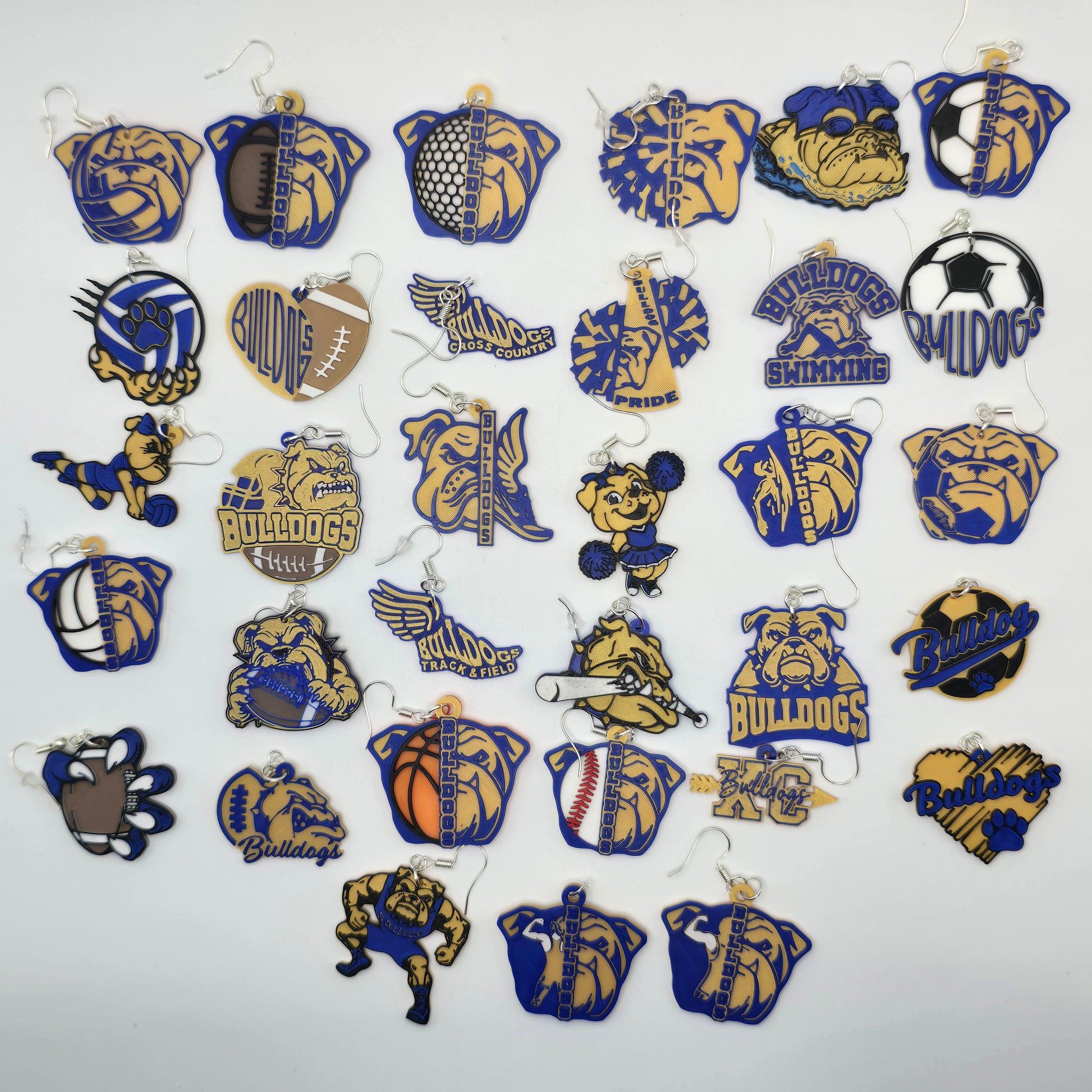 This varsity‑level collection features 33 unique pairs of Bulldog earrings — each one designed to celebrate a different sport, mascot pose, or moment of school pride. Whether you're an athlete, coach, fan, or proud supporter, this set covers the full spectrum of team energy from warm‑ups to championships.