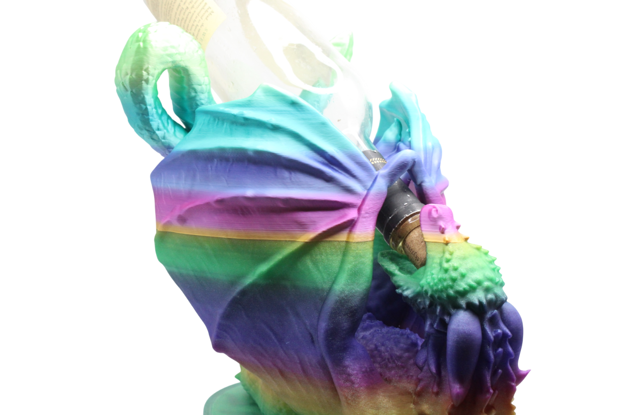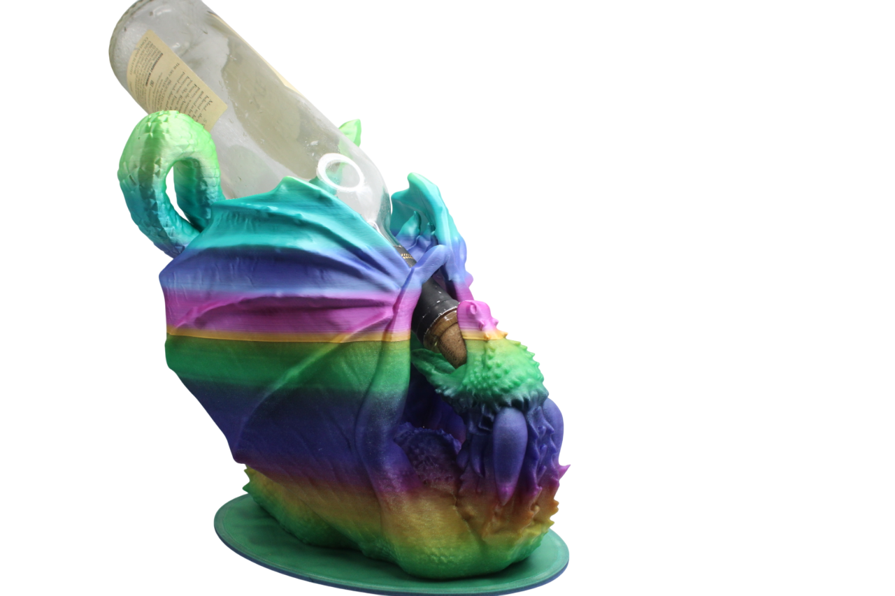 With bold hues of blue, purple, green, and orange, this 3D-printed piece transforms any countertop, bar cart, or shelf into a fantasy showcase. Whether you're a wine lover, dragon enthusiast, or collector of unique home décor, this piece brings magic and motion to your space.