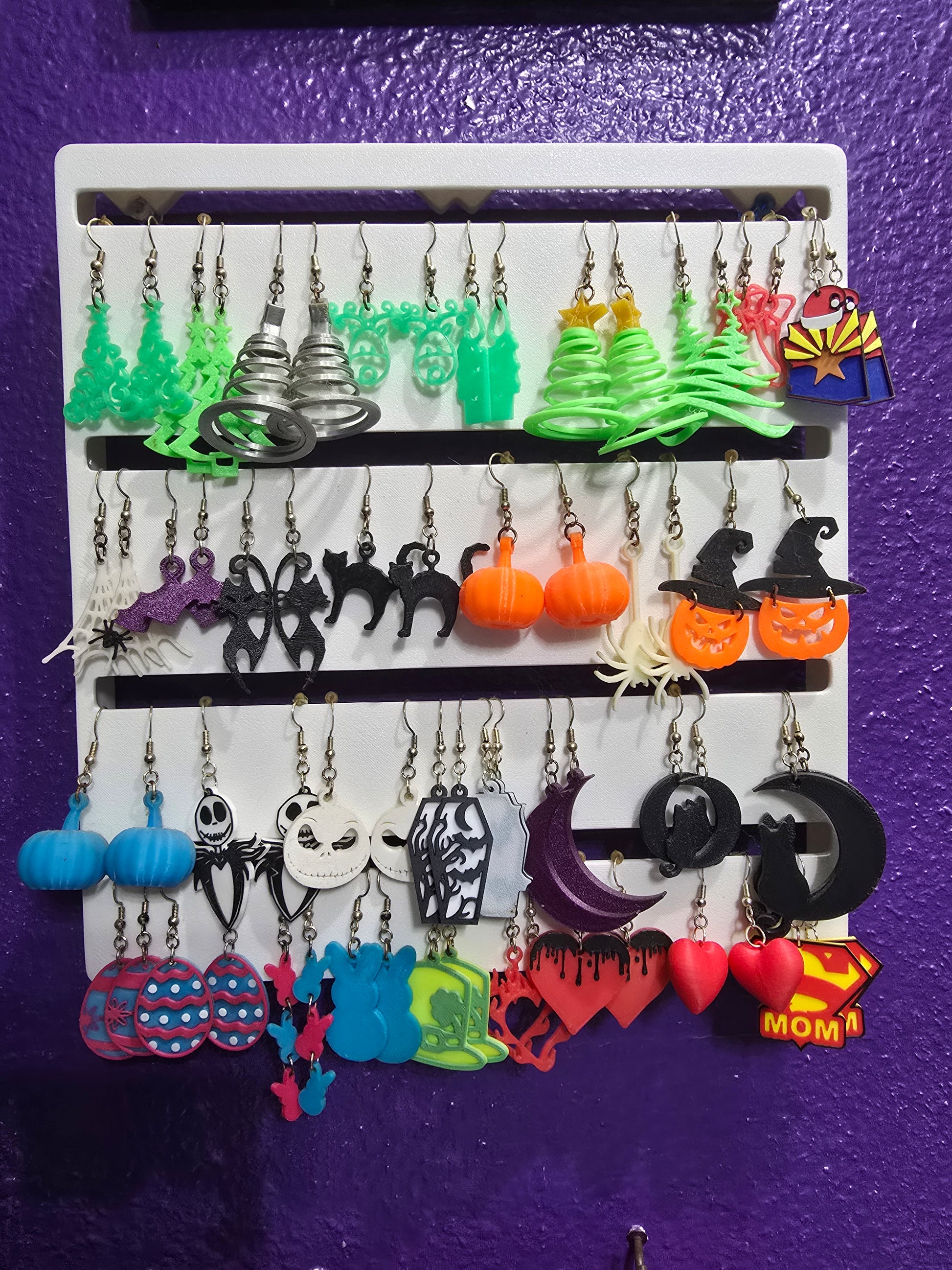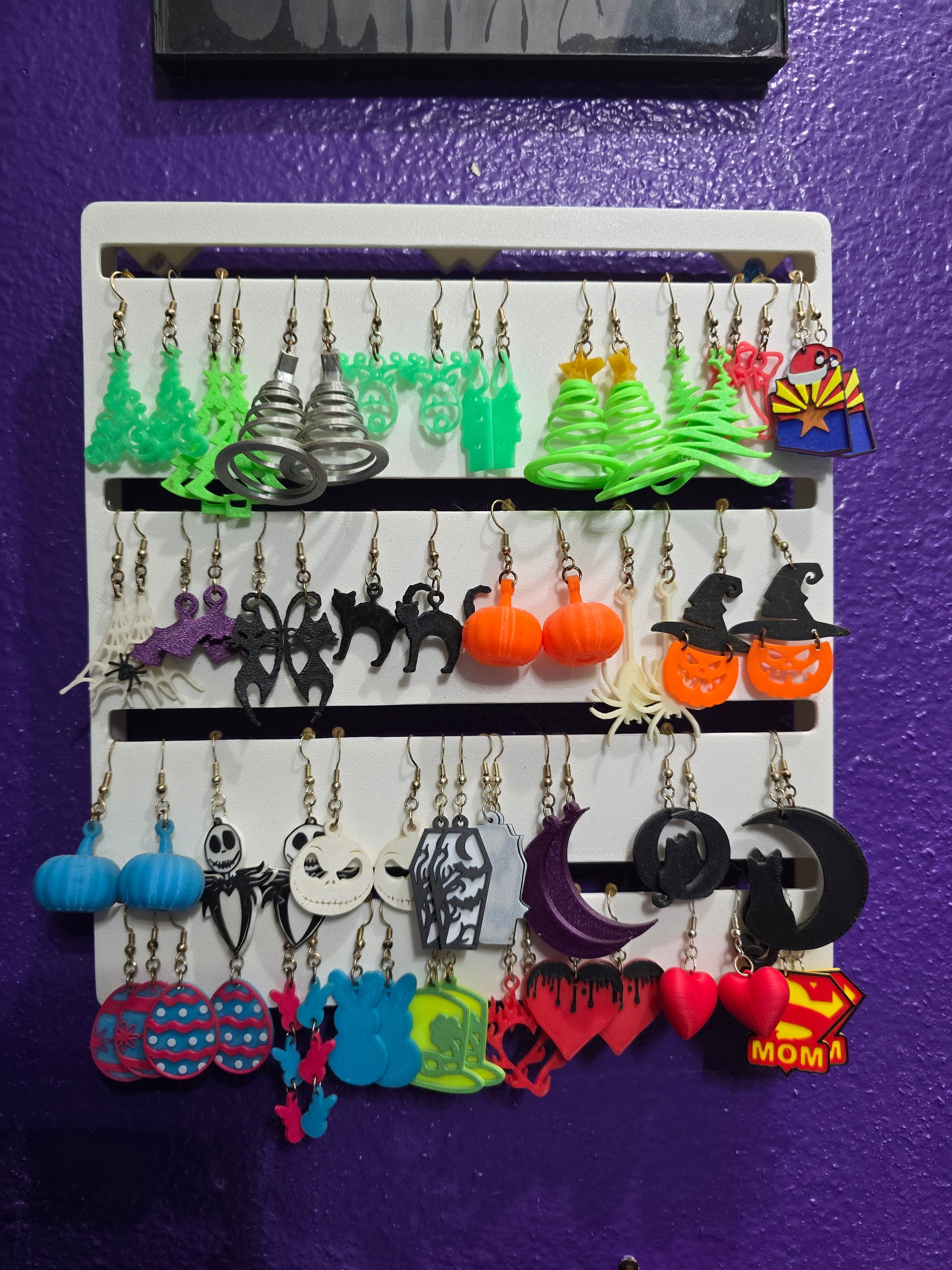 Earring Display Stand – White Slotted Rack for Dangling Earrings 🎯🦇✨