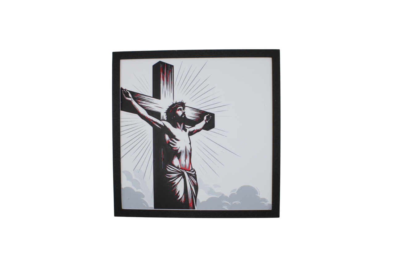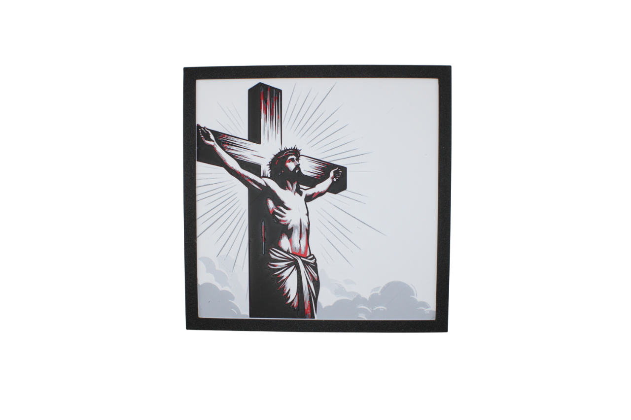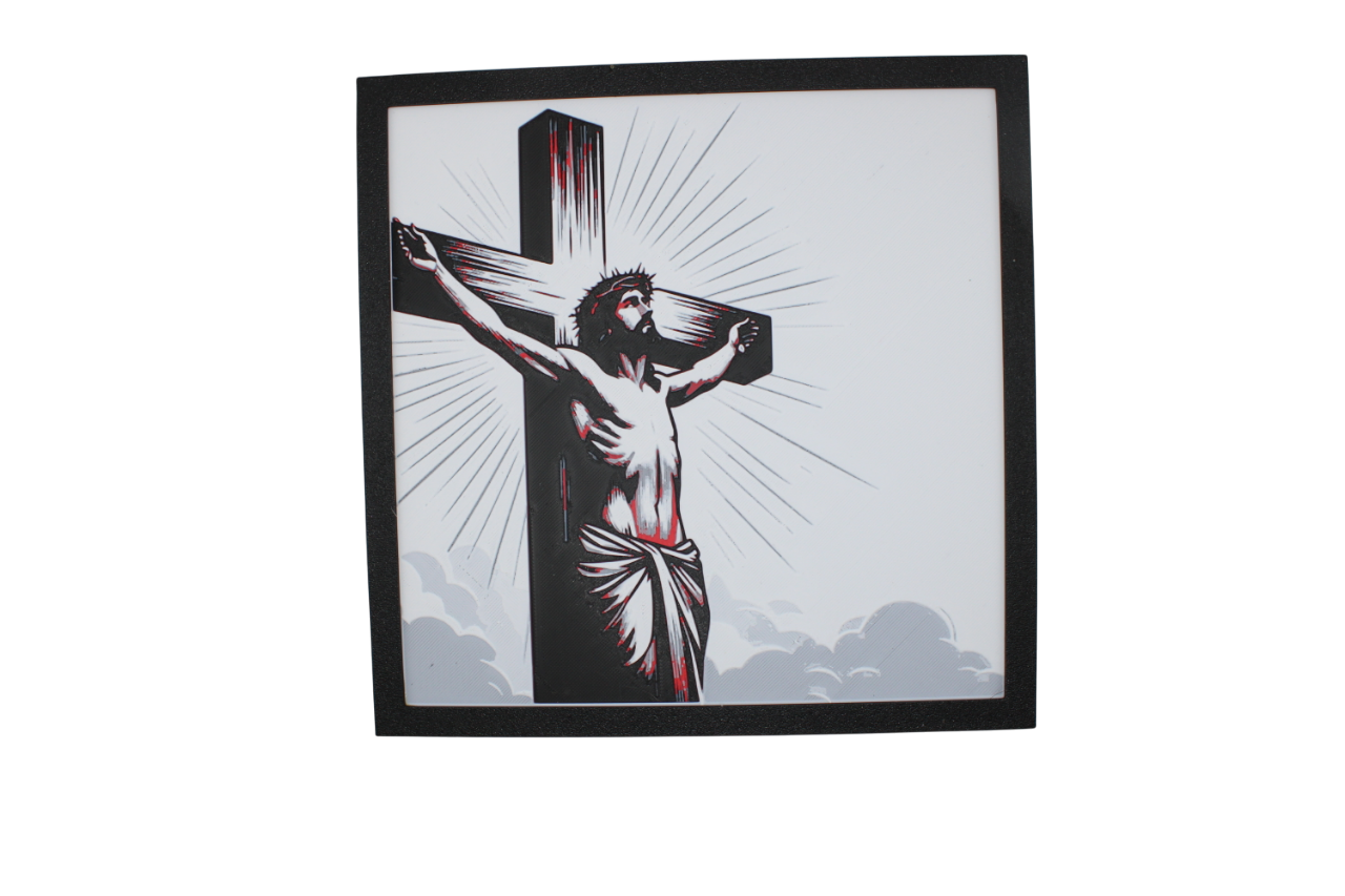 ✝️ Jesus on the Cross – Framed 3D Printed Painting with Sacred Symbolism