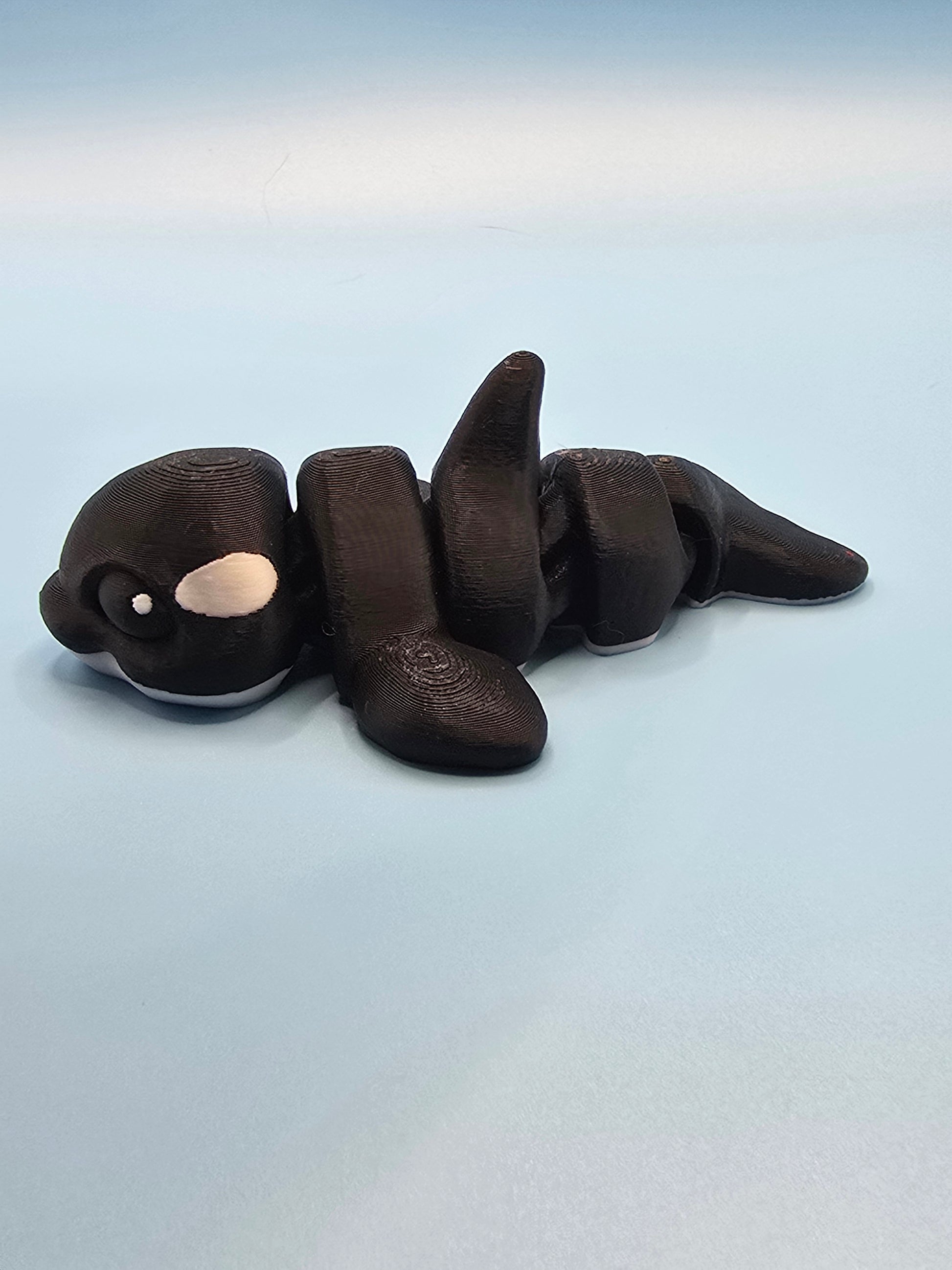 Dive into the deep with our captivating Articulated Orca! ๐๐ค This delightful 3D-printed marine mammal is meticulously crafted with a segmented, articulated body, allowing for engaging movement and display. Showcasing the iconic black and white markings of these intelligent creatures, this figure brings a touch of the ocean's wonder to your collection.