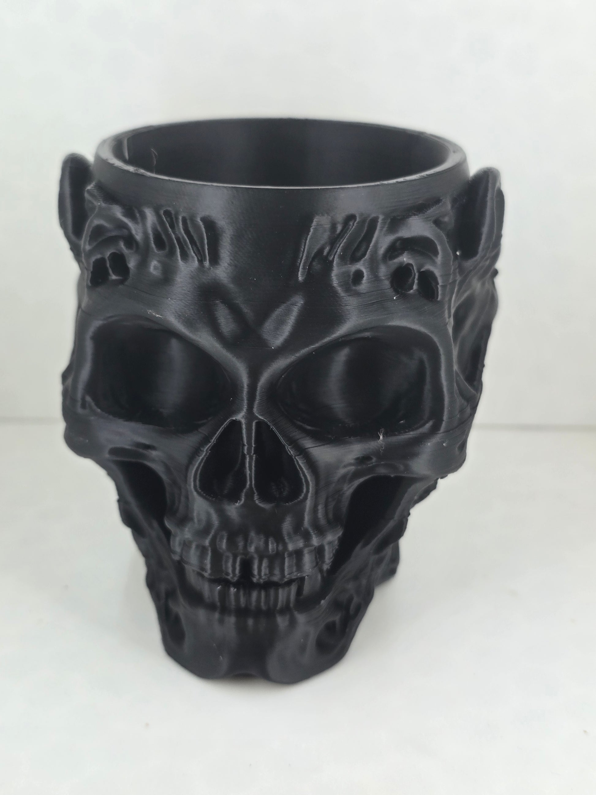 This striking 3D-printed skull container combines edgy design with practical size, easily holding a standard soda can inside. Perfect for adding a bold, unconventional touch to your space while keeping your items secure and accessible. Its unique form makes it a conversation starter and a functional piece of art.