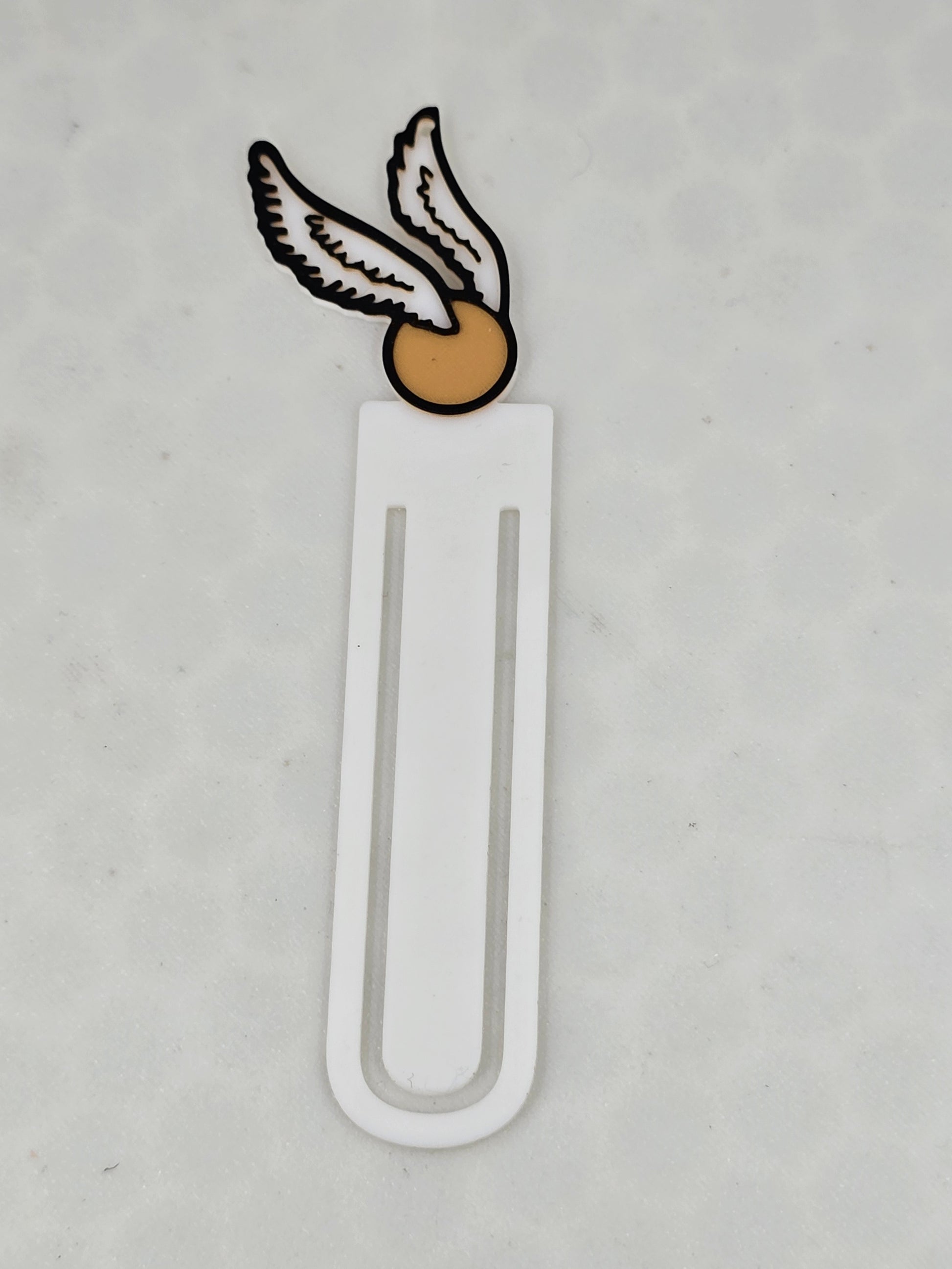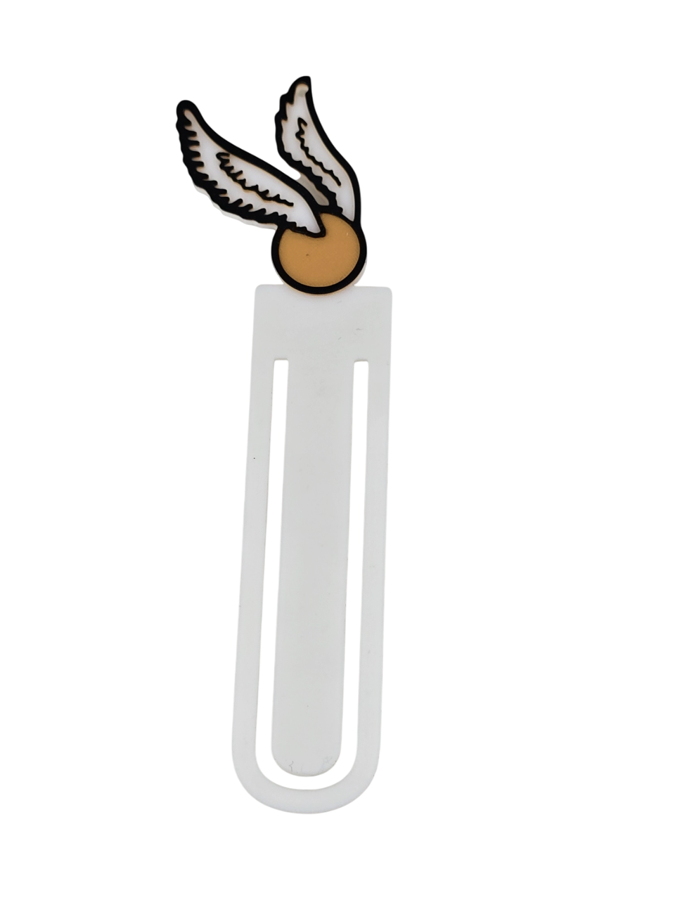 This bookmark features the iconic Golden Snitch—wings outstretched, ready to soar through your next chapter. With a gleaming gold center and crisp white wings outlined in black, it captures the thrill of the chase and the magic of the moment. Whether you're marking a page in your favorite fantasy or gifting a piece of literary nostalgia, this Snitch is always in play.