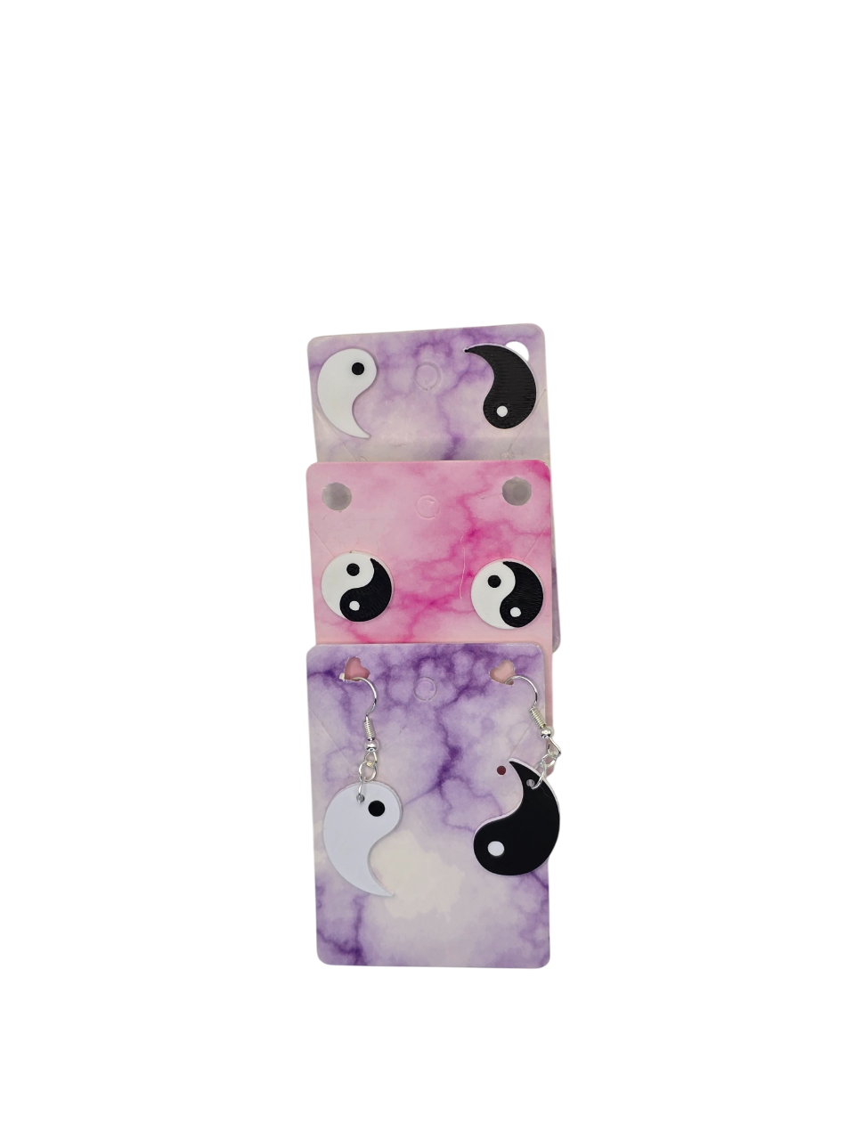 Choose between half-and-half contrast or full yin yang unity, available in both stud and dangle formats to match your mood and style.
